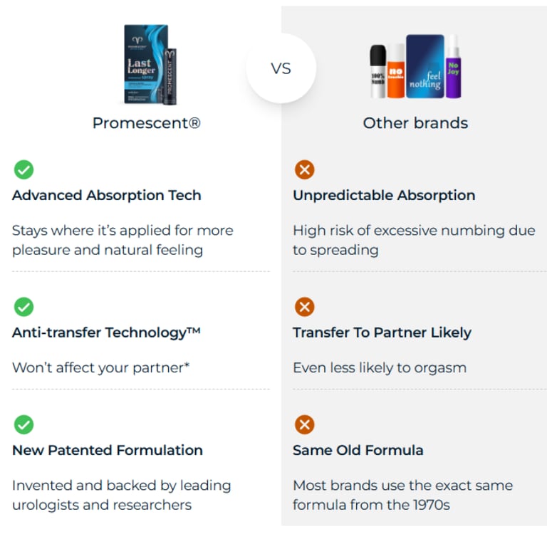 What separates Promescent from others is its Anti-Transfer Technology™, allowing quicker absorption into penile skin instead of staying on the surface.